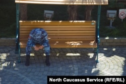 Главная набережная курорта оцеплена бойцами Росгвардии. Табличка призывает оставаться дома. А вот входы на остальные муниципальные пляжи охраняют куда более легко преодолимые преграды.